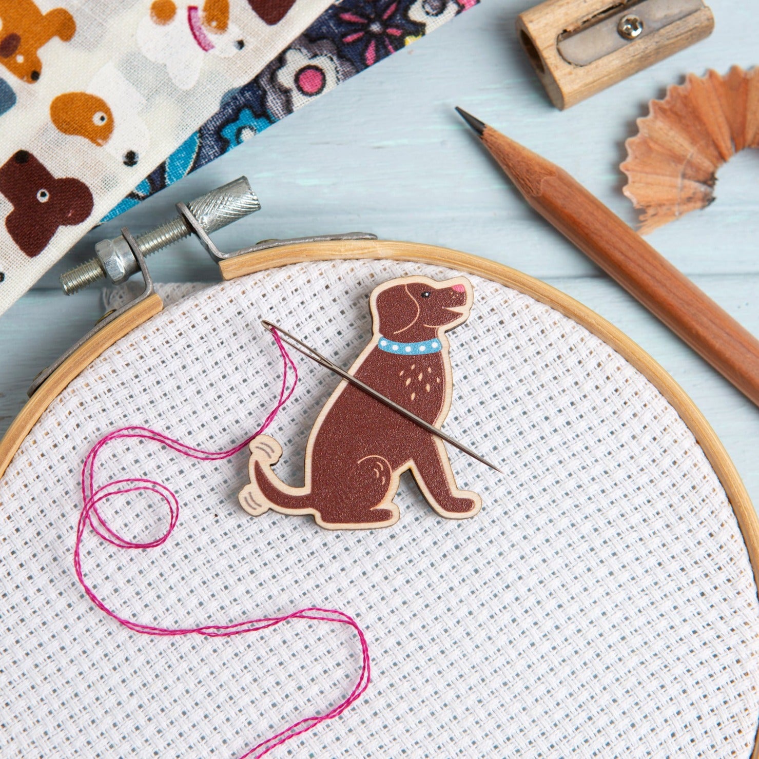Featuring an adorable labrador dog design, this needle minder is both functional and stylish. Crafted in the UK using 4mm thick maple wood and super-strong neodymium magnets, it's built to last. Measuring about 3cm in diameter, it's the perfect size to pop on your embroidery hoop, dressmaking project, or any other fabric you're working on.