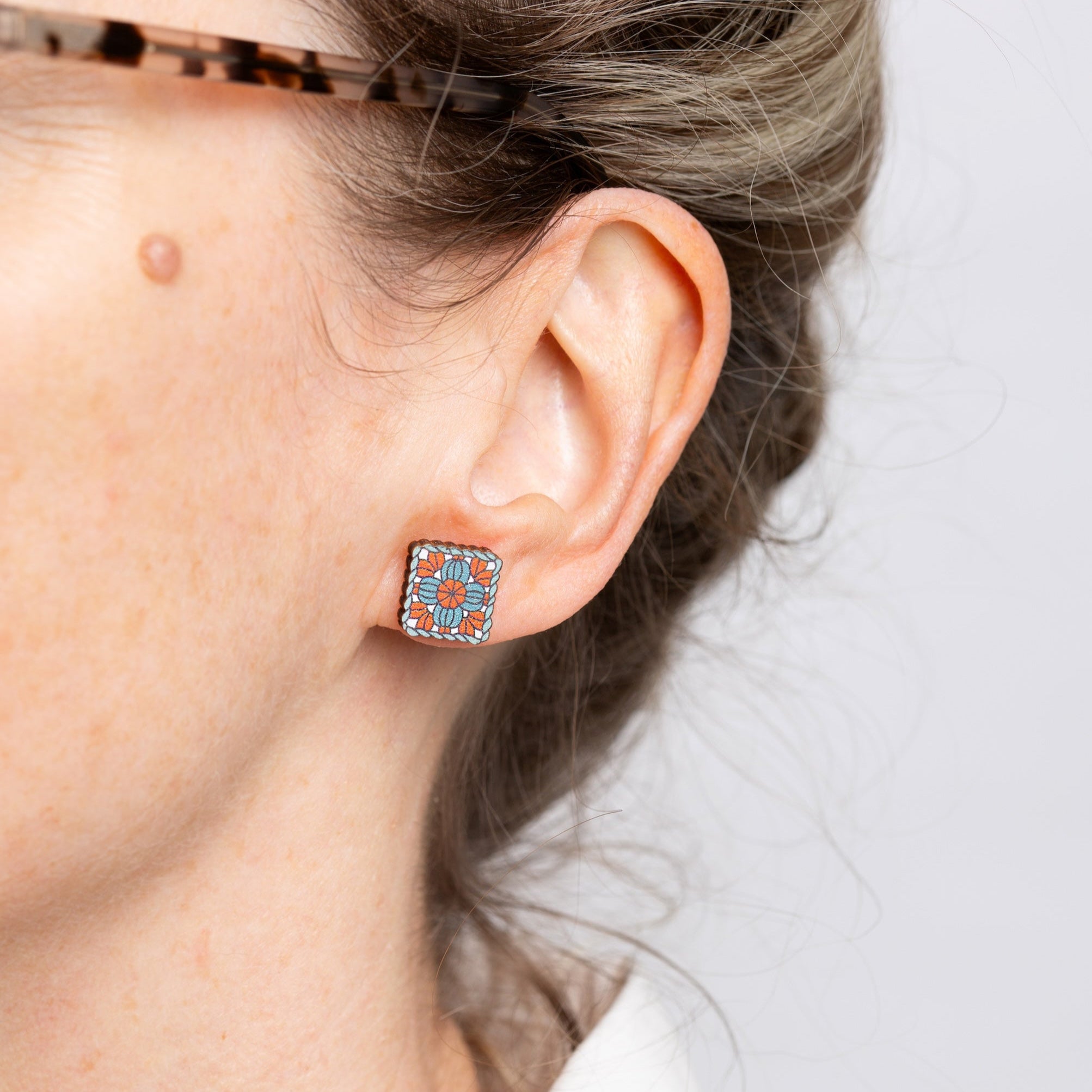 Show off your crafty side with our adorable Granny Square wooden stud earrings!