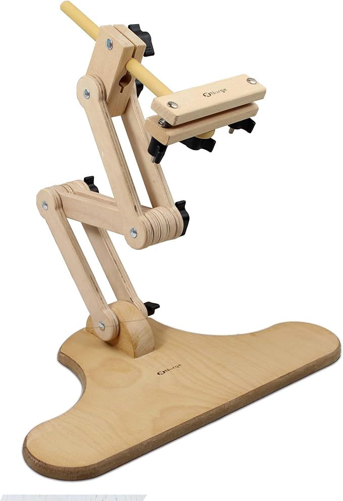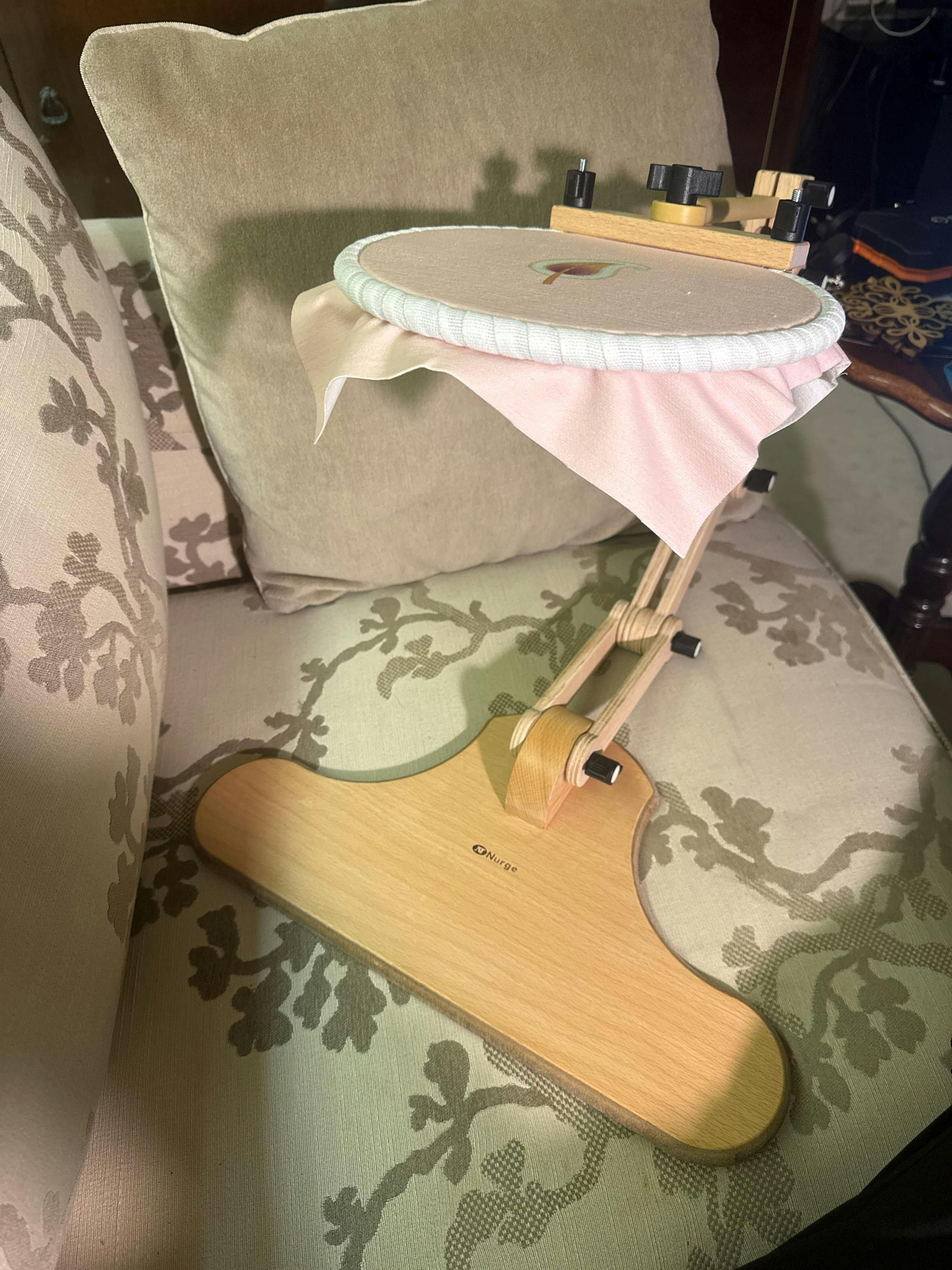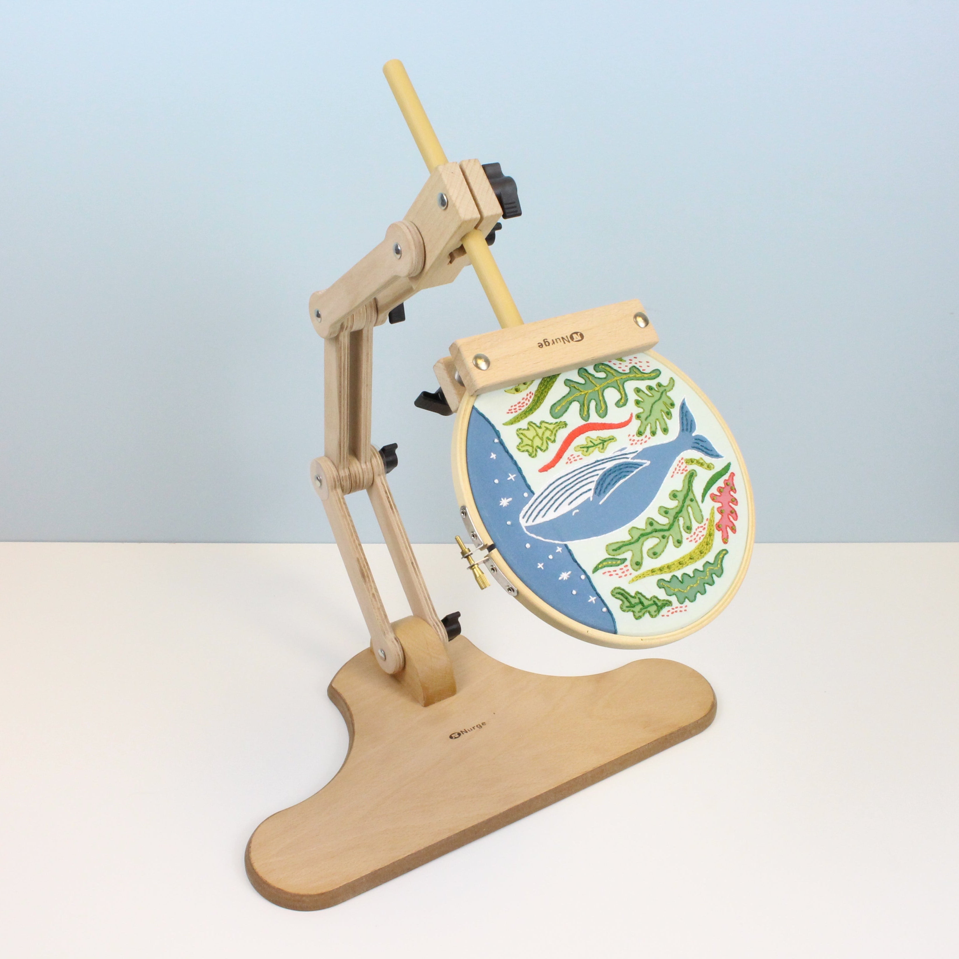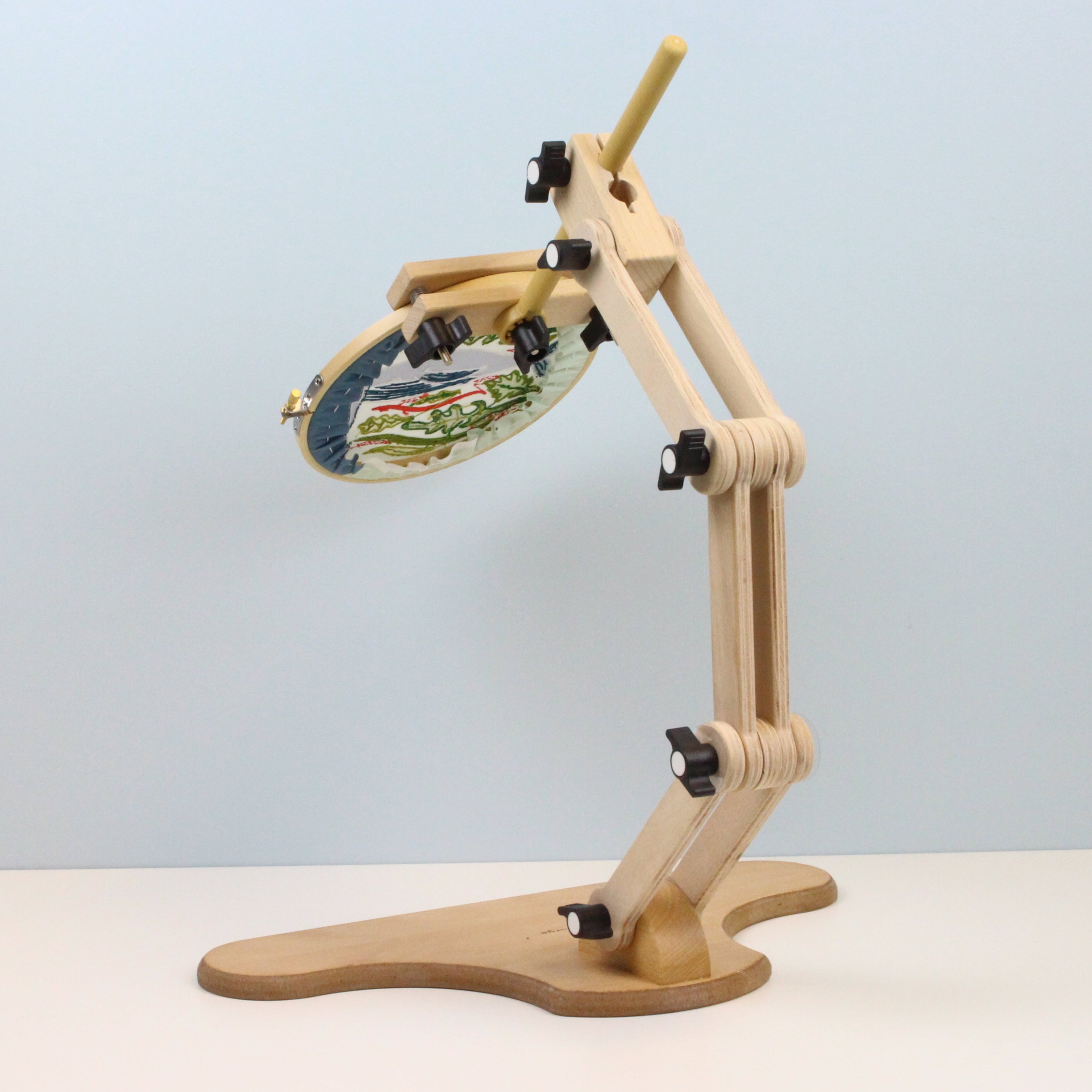 Discover hassle free stitching with this highly adjustable embroidery stand. The base is designed to be sat on with the hoop held in front of you, or placed on a table. The wood is finely sanded and polished giving it a very high end finish - it's really a lovely stand!
