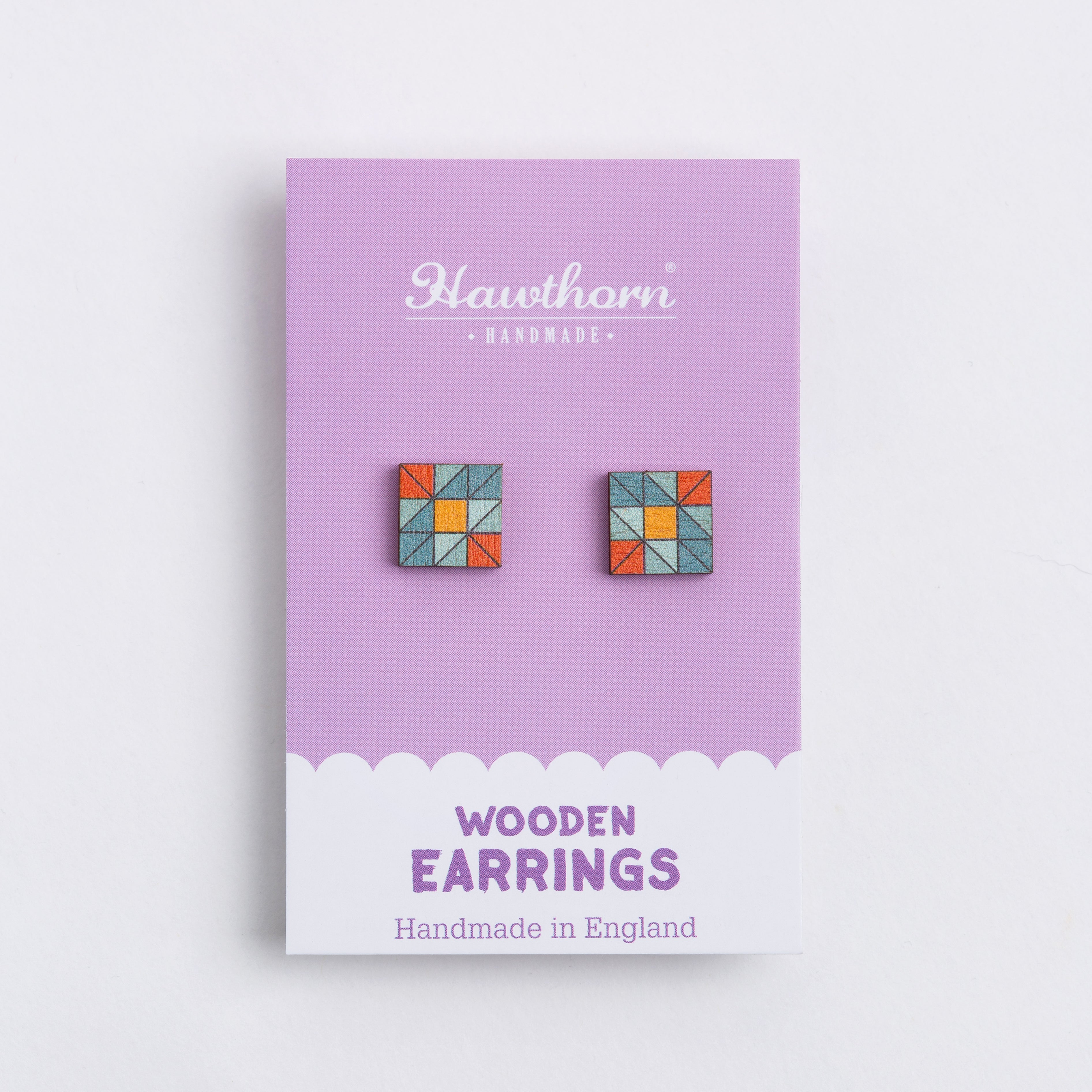Show off your crafty side with our charming Quilt Block wooden stud earrings!