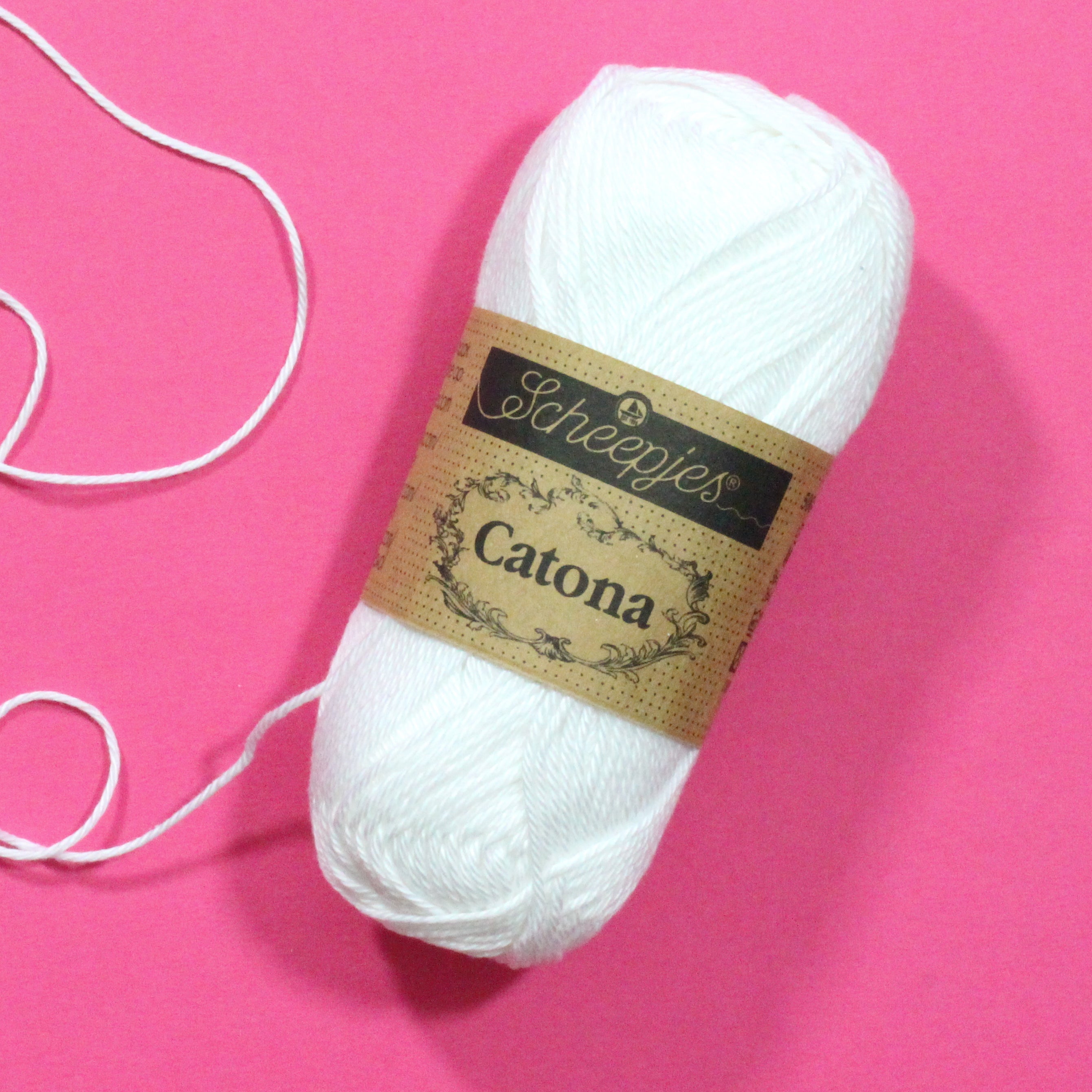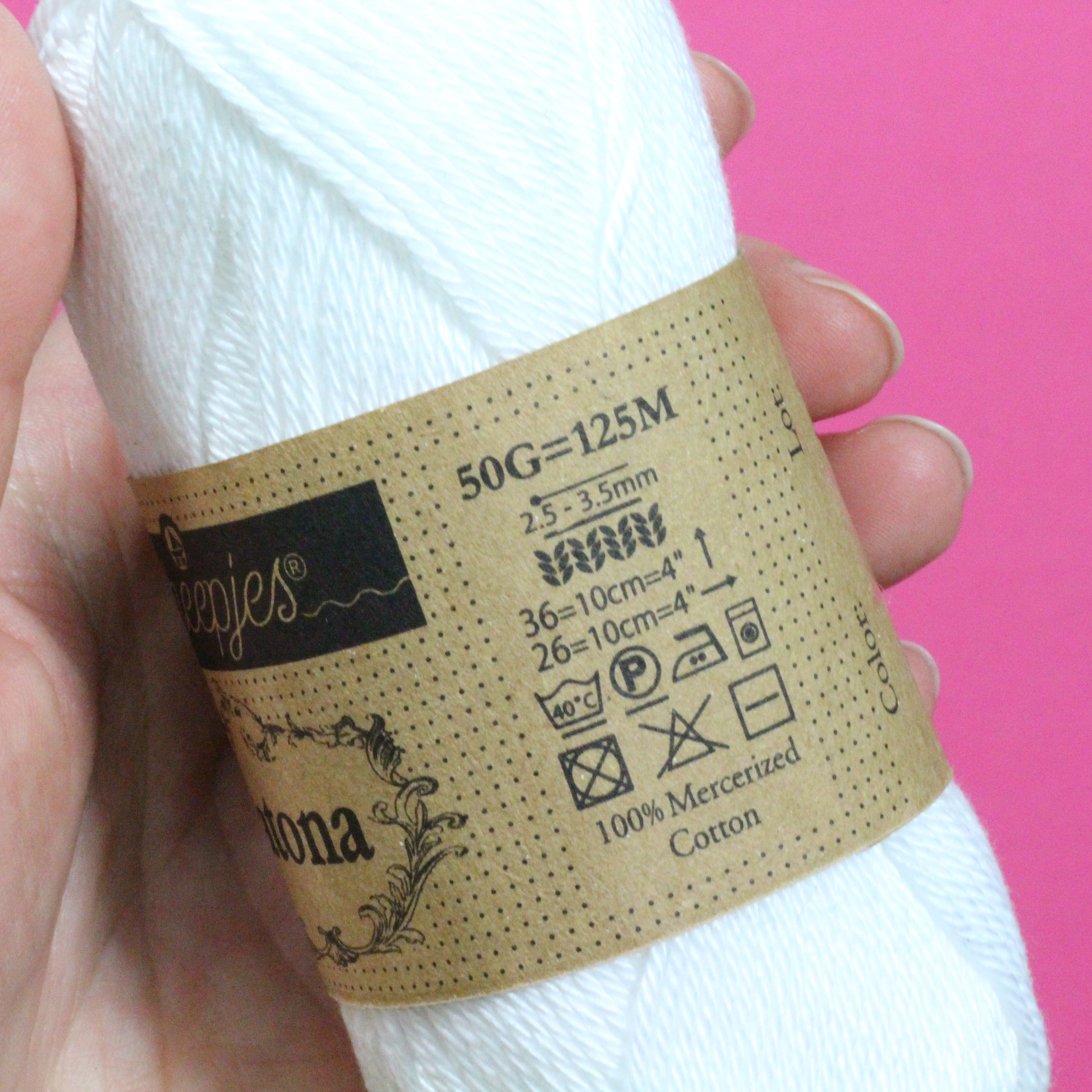 A 50g ball of Scheepjes Catona Cotton Yarn. This is ideal for using as a warp with our Pop-Up Loom or your own weaving projects.