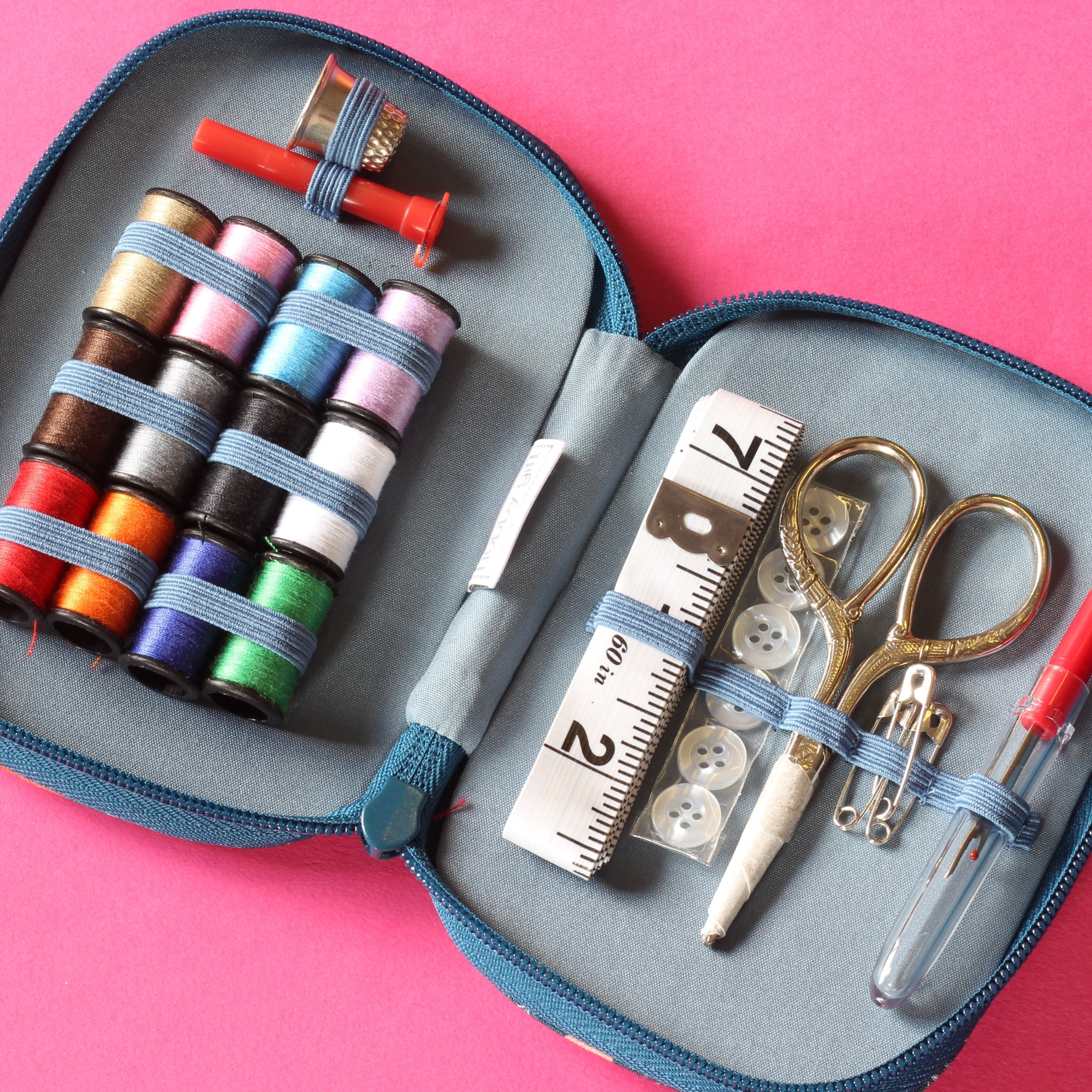 Full of all your sewing essentials, this zip up case makes a wonderful gift for anyone who might need to sew on a button, repair a tear or do any other quick fixes.