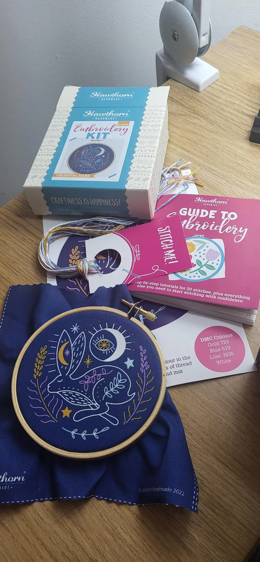 Turn off the noise of the world and get lost in embroidery with the beginner-friendly Celestial Hare mini embroidery kit.
