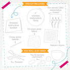 This cross stitch kit teaches you all the basics of cross stitch including preparing the fabric in the hoop, how to follow a cross stitch pattern and how to do the one simple stitch needed!Feeling inspired?