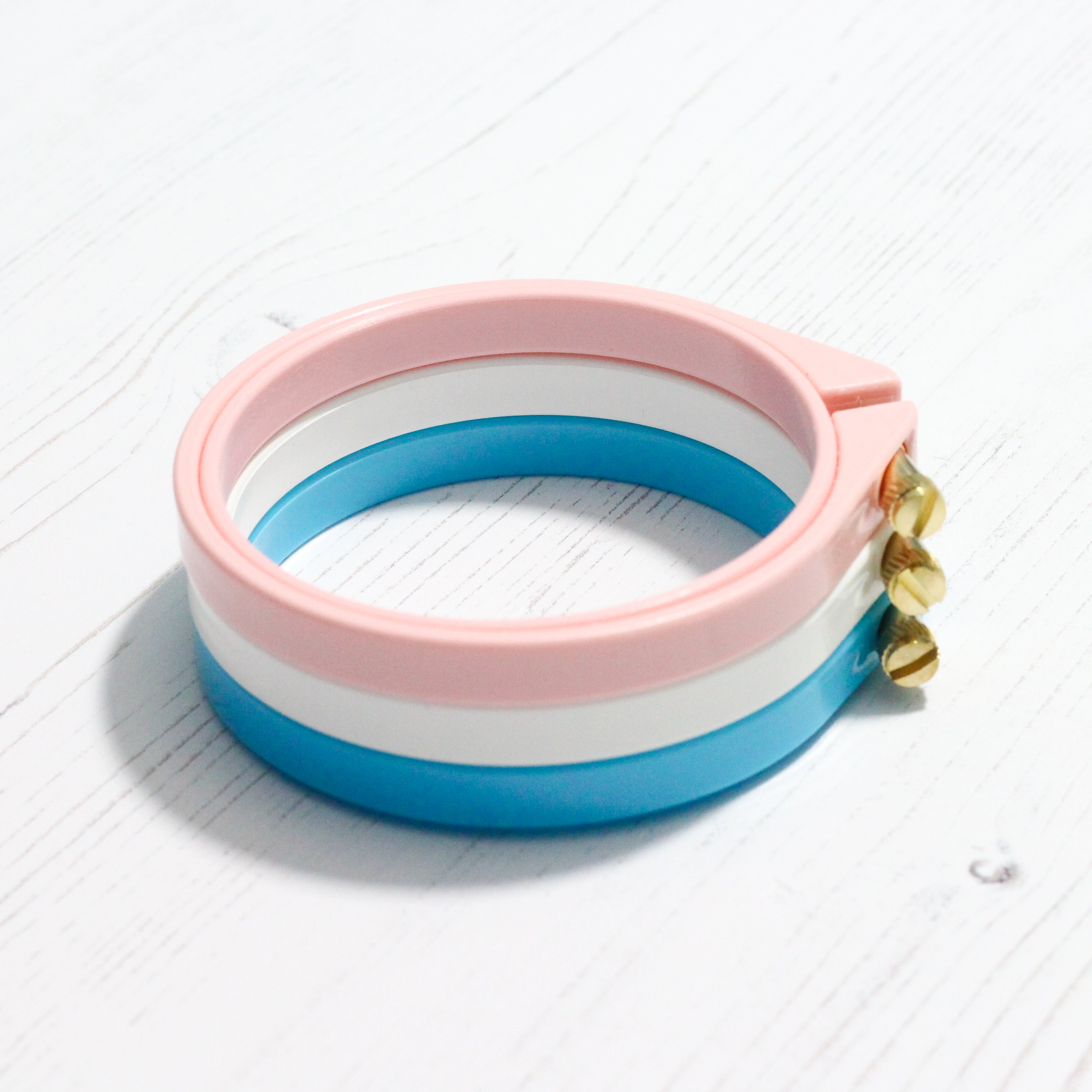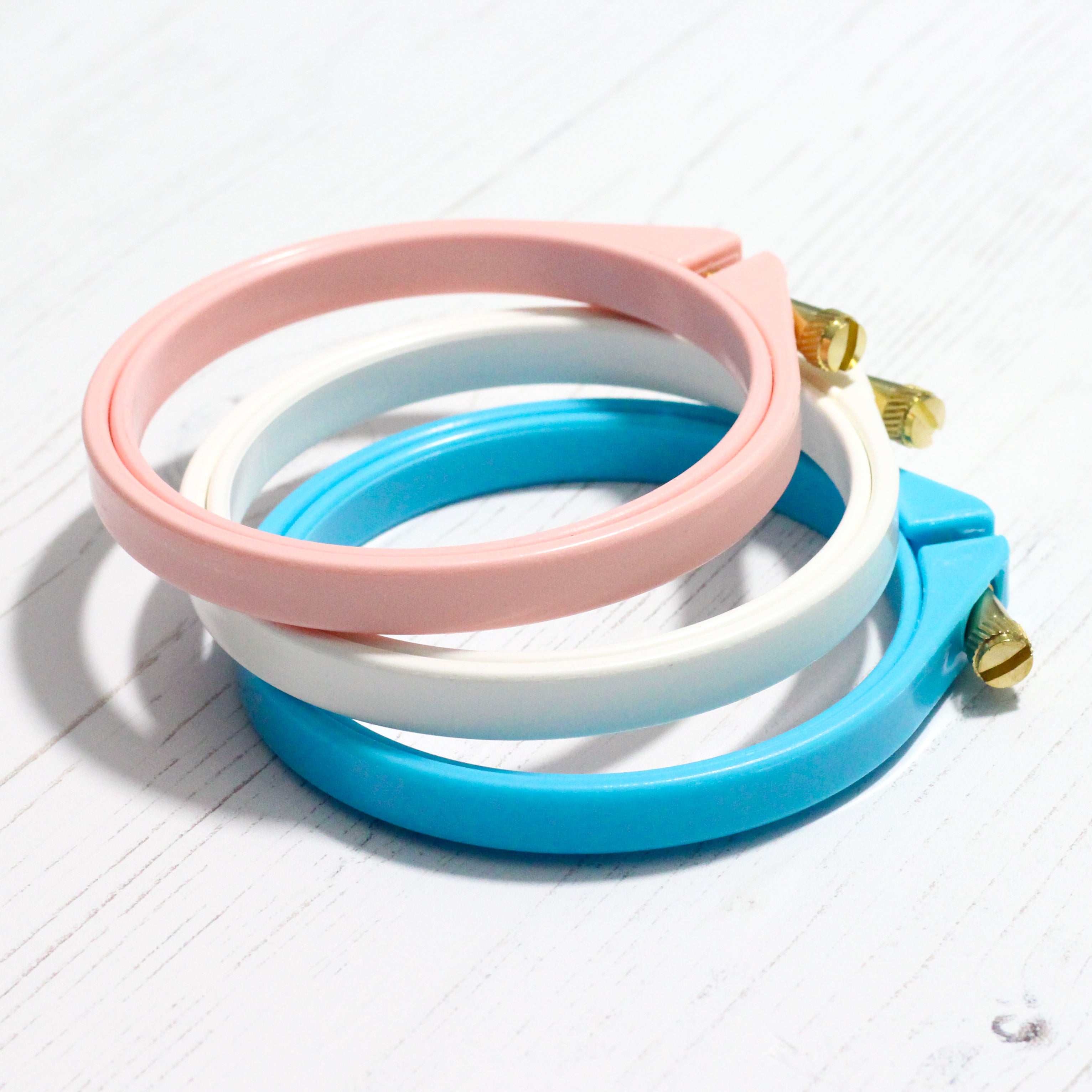 Need high quality solid wood embroidery hoops that are affordable? You're in the right place! Sized from 3 inches up to a huge 12 inches, our wooden hoops are perfect for all embroidery, cross stitch and textile projects. Plus discover our flexi display hoops from Nurge, and mini plastic embroidery hoops made in the UK in a selection of colours.