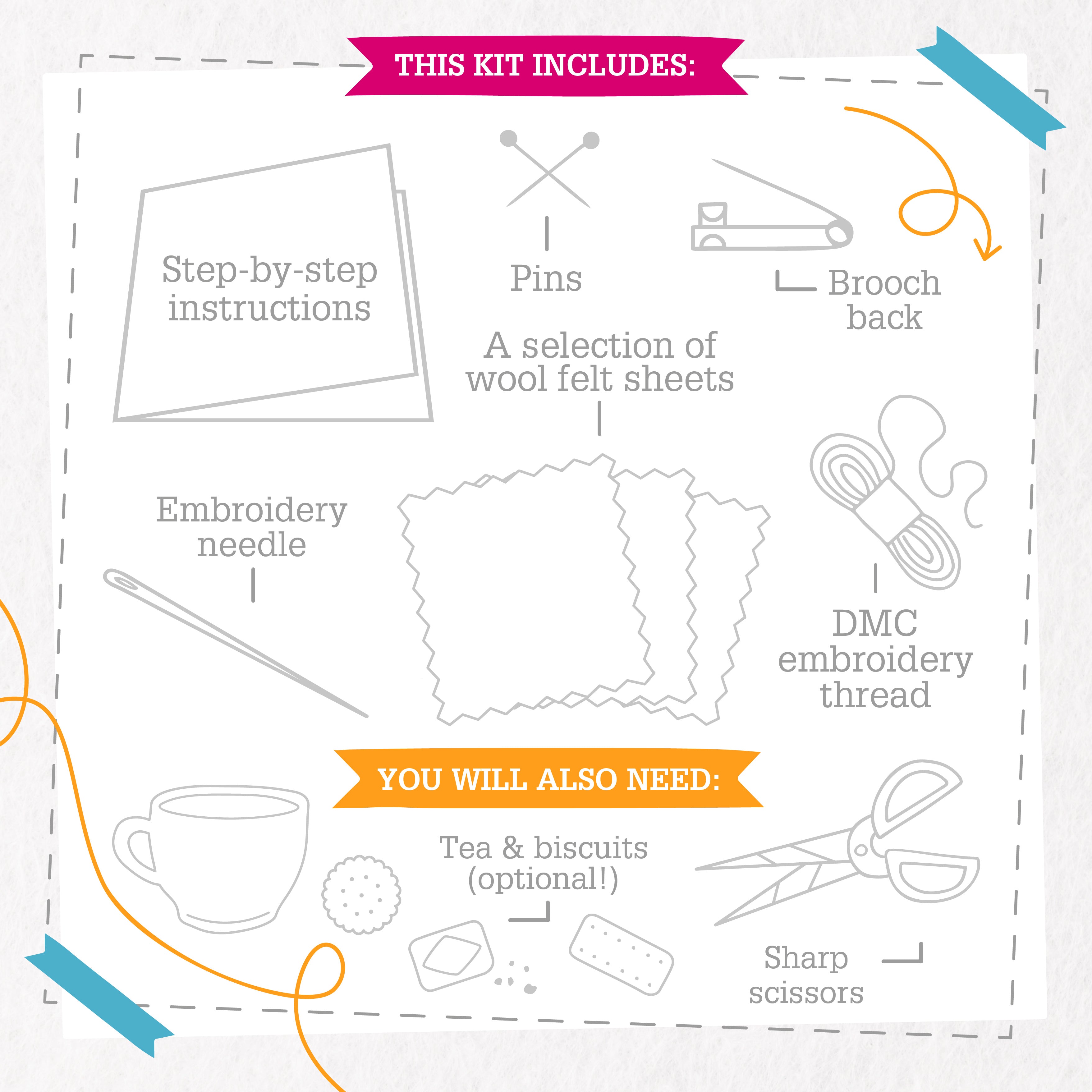 Ignite your creative imagination with our beginner-friendly felt craft kits, all made in the UK from soft wool felt and DMC embroidery threads. Discover hand stitched brooches, pennants, garlands and decorations.