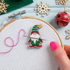 This festive magnetic needle minder will change your life! Pop it on your embroidery hoop, hand quilting project, dressmaking creation or any fabric you're working with, and the strong magnet will hold on to your needles and pins until you need them next. Plus it looks super cute whilst doing do! You will save hours no longer hunting through the carpet or down the side of the sofa for those elusive lost needles.