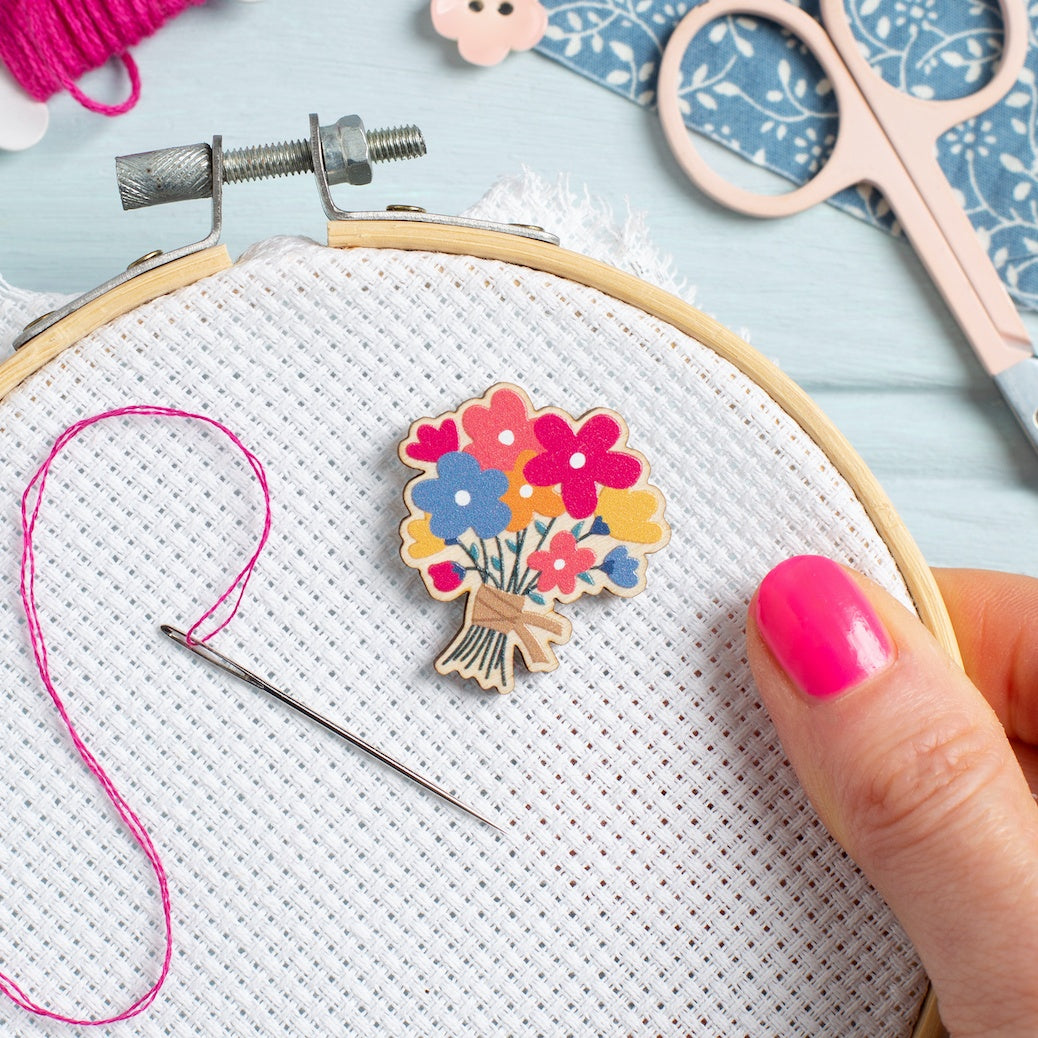 Pop this handy magnetic tool on your fabric and let it mind your pins and needles. Choose from over 20 designs!