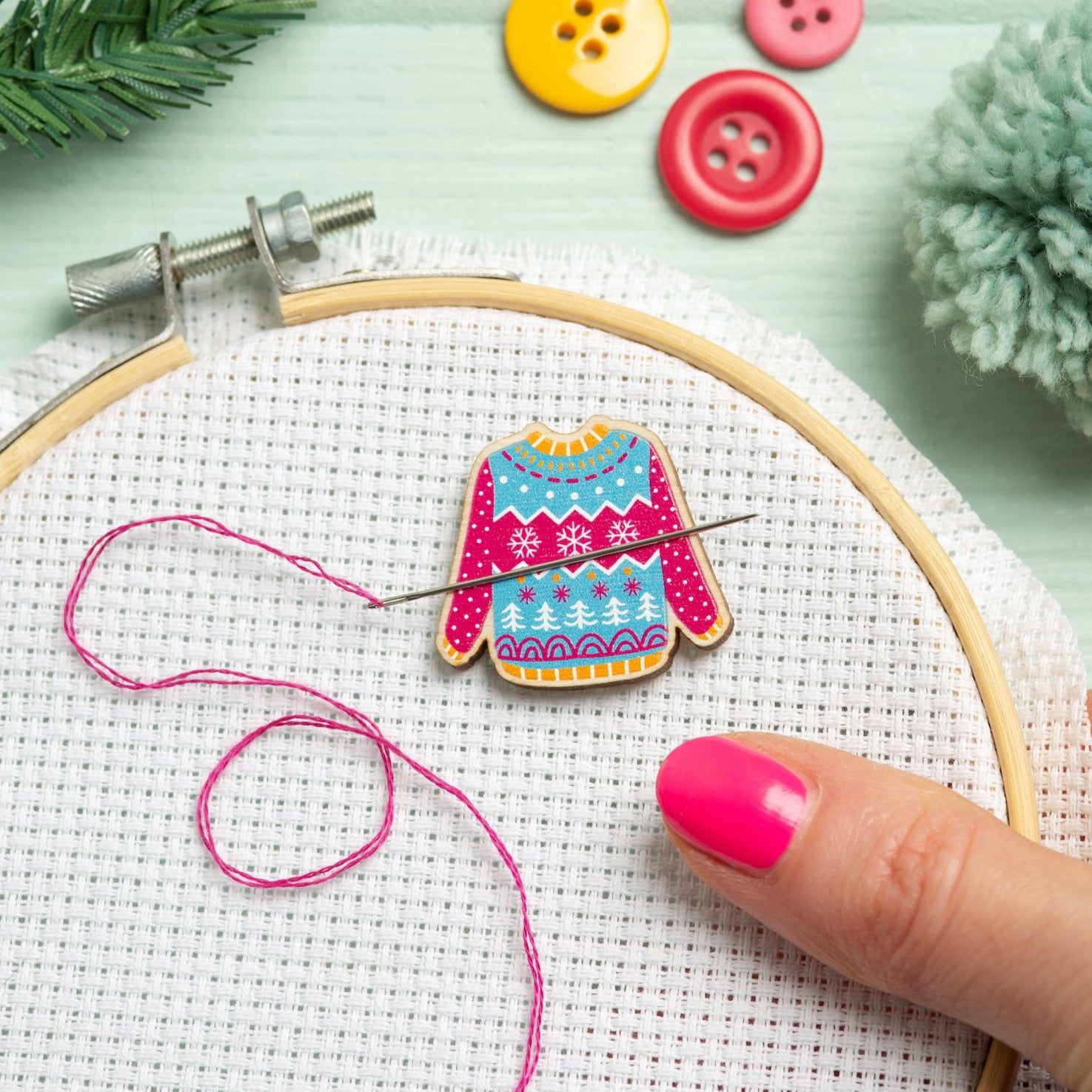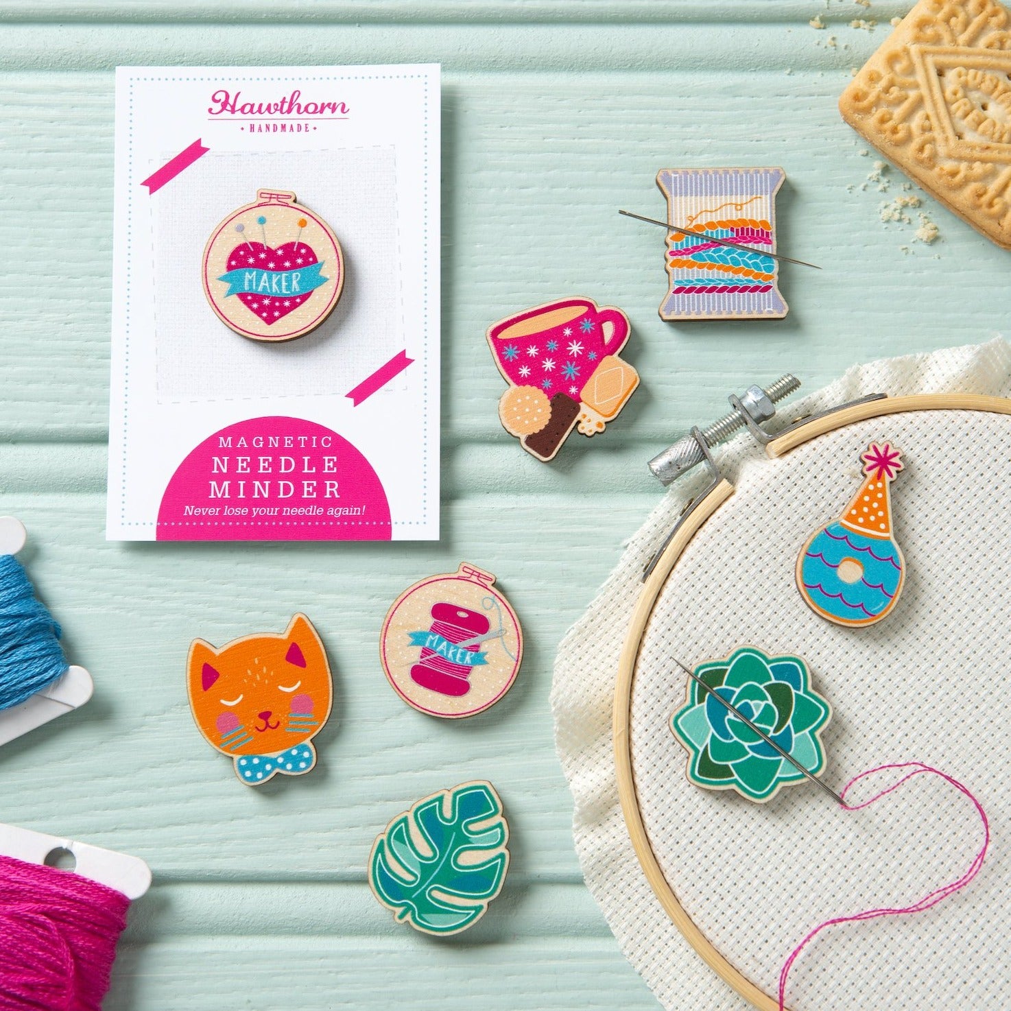 Pop this handy magnetic tool on your fabric and let it mind your pins and needles. Choose from over 20 designs!